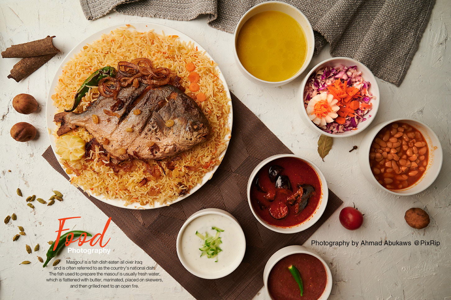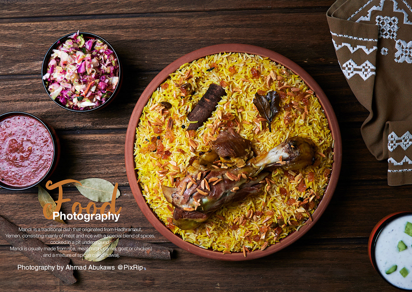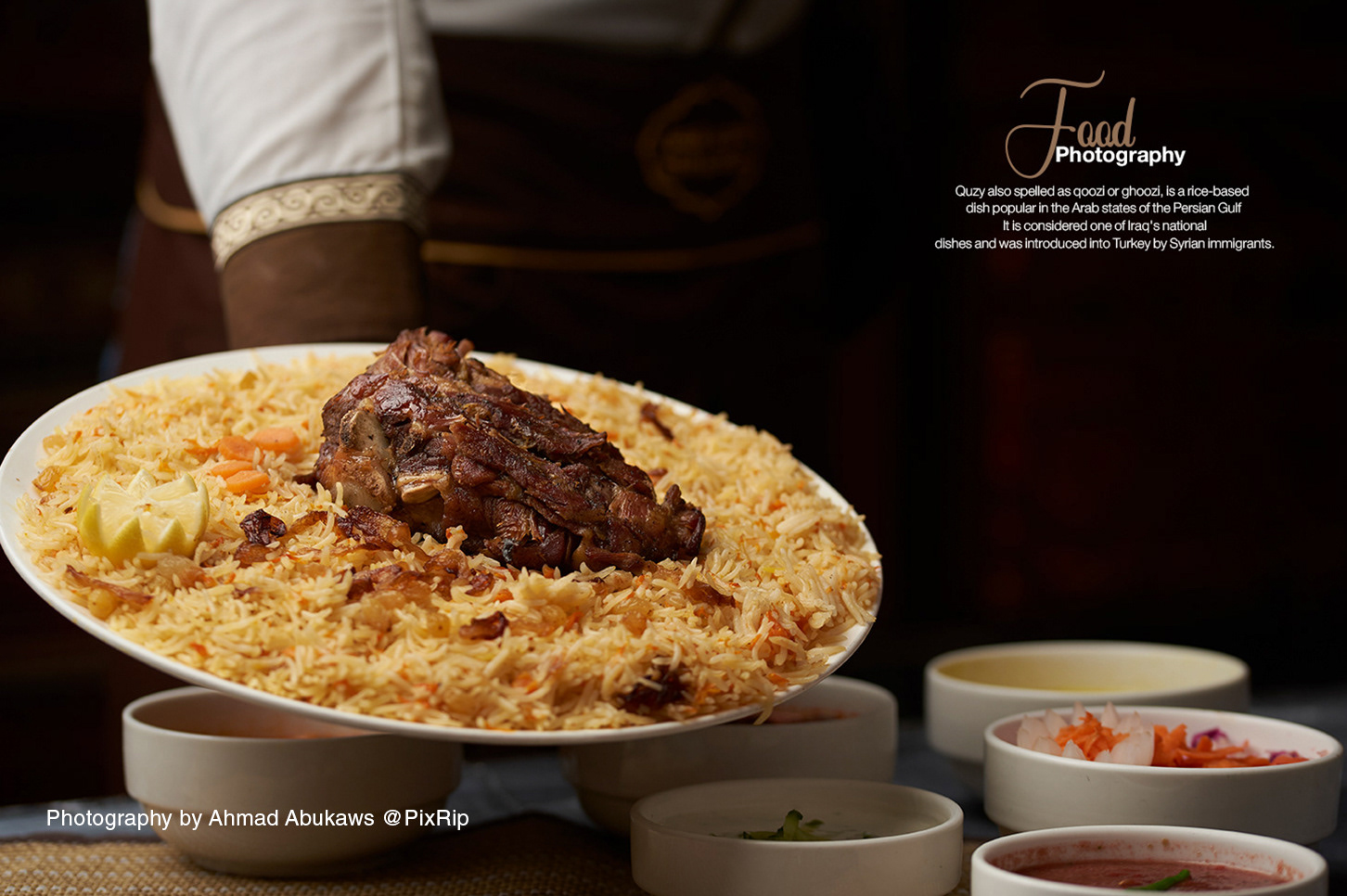 Food photography for a Yemeni mandi restaurant, focused on traditional rice and meat dishes with warm lighting and dark backgrounds. The shoot highlights authenticity, texture, and appetite appeal, ideal for menus, social media, and brand identity